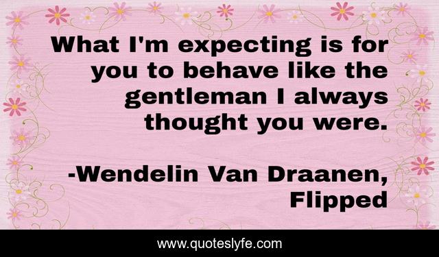 This page presents the quote "What I'm expecting is for you to behave like the gentleman I always thought you were.". Author of this quote is Wendelin Van Draanen, Flipped. This quote is about men, humor,.