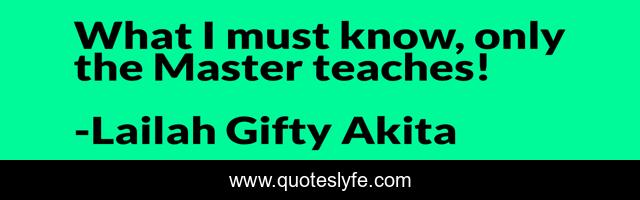 This page presents the quote "What I must know, only the Master teaches!". Author of this quote is Lailah Gifty Akita. This quote is about wise-words, education, master, lailah-gifty-akita-affirmations, learning,.