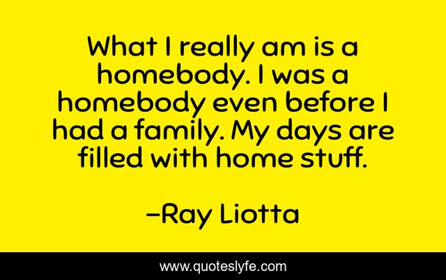 This page presents the quote "What I really am is a homebody. I was a homebody even before I had a family. My days are filled with home stuff.". Author of this quote is Ray Liotta. This quote is about home, days, before,.