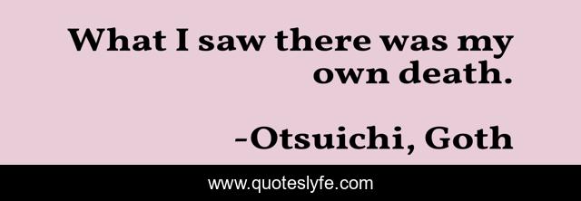 This page presents the quote "What I saw there was my own death.". Author of this quote is Otsuichi, Goth. This quote is about horror, thriller, crime,.