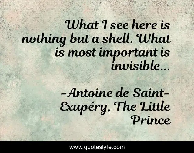 This page presents the quote "What I see here is nothing but a shell. What is most important is invisible...". Author of this quote is Antoine de Saint-Exupéry, The Little Prince. .