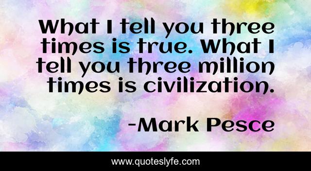 This page presents the quote "What I tell you three times is true. What I tell you three million times is civilization.". Author of this quote is Mark Pesce. This quote is about civilization, language,.