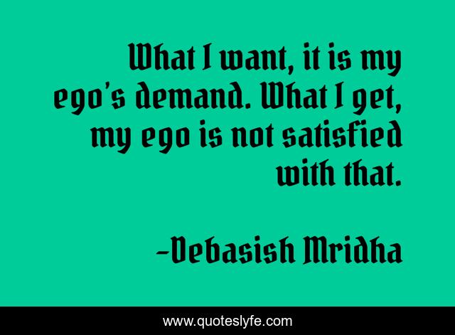 This page presents the quote "What I want, it is my ego’s demand. What I get, my ego is not satisfied with that.". Author of this quote is Debasish Mridha. This quote is about life, love, knowledge, inspirational, intelligence, philosophy, wisdom, quotes, affection,.