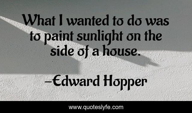 This page presents the quote "What I wanted to do was to paint sunlight on the side of a house.". Author of this quote is Edward Hopper. This quote is about house, sunlight, paint,.