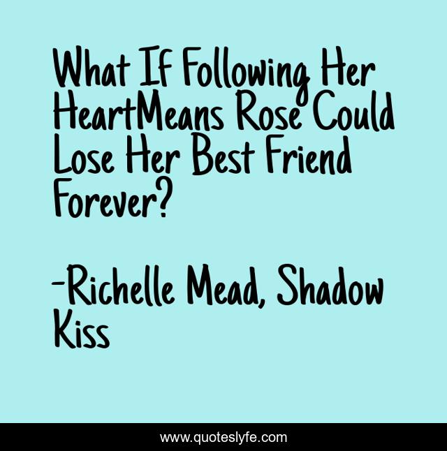 This page presents the quote "What If Following Her HeartMeans Rose Could Lose Her Best Friend Forever?". Author of this quote is Richelle Mead, Shadow Kiss. This quote is about forever, friends, richelle-mead,.