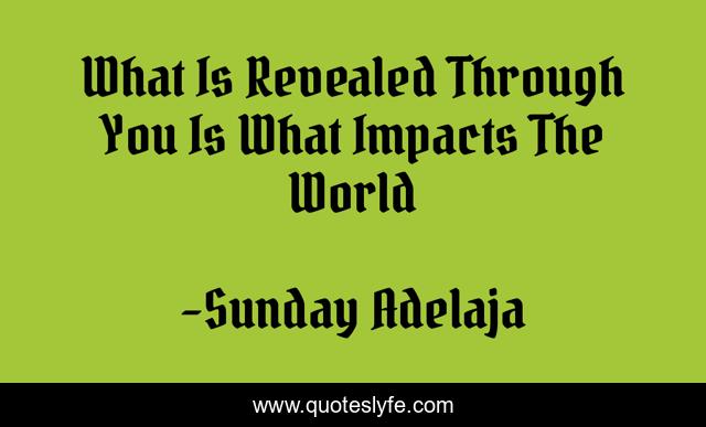 This page presents the quote "What Is Revealed Through You Is What Impacts The World". Author of this quote is Sunday Adelaja. This quote is about impact, reveal, world,.