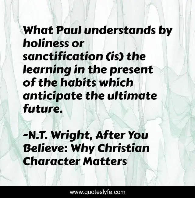 "N.T. Wright, After You Believe: Why Christian Character Matters Quotes." Quoteslyfe.com, 2025. Fri. 05 Dec. 2025. <https://www.quoteslyfe.com/quote/What-Paul-understands-by-holiness-or-sanctification-206190>.