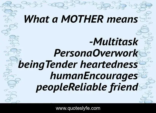 "Multitask PersonaOverwork beingTender heartedness humanEncourages peopleReliable friend Quotes." Quoteslyfe.com, 2025. Fri. 05 Dec. 2025. <https://www.quoteslyfe.com/quote/What-a-MOTHER-means-22490>.