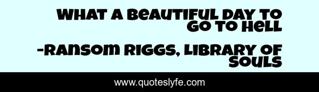 This page presents the quote "What a beautiful day to go to hell". Author of this quote is Ransom Riggs, Library of Souls. This quote is about pessimistic, humour,.