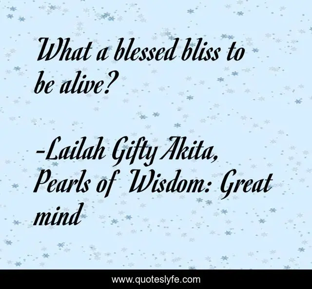 "Lailah Gifty Akita, Pearls of Wisdom: Great mind Quotes." Quoteslyfe.com, 2025. Sat. 06 Dec. 2025. <https://www.quoteslyfe.com/quote/What-a-blessed-bliss-to-be-alive-85215>.