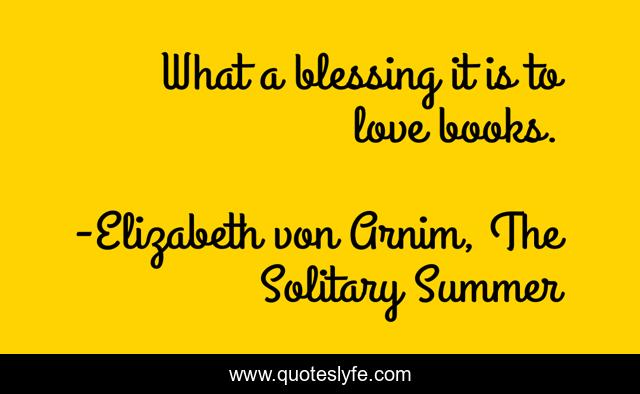 This page presents the quote "What a blessing it is to love books.". Author of this quote is Elizabeth von Arnim, The Solitary Summer. This quote is about reading, book-lovers,.