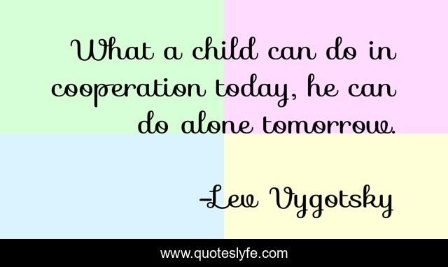This page presents the quote "What a child can do in cooperation today, he can do alone tomorrow.". Author of this quote is Lev Vygotsky. This quote is about tomorrow, today, child,.