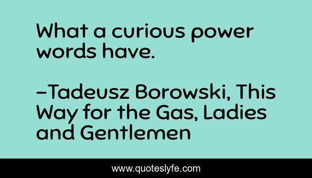 "Tadeusz Borowski, This Way for the Gas, Ladies and Gentlemen Quotes." Quoteslyfe.com, 2025. Fri. 05 Dec. 2025. <https://www.quoteslyfe.com/quote/What-a-curious-power-words-have-22048>.