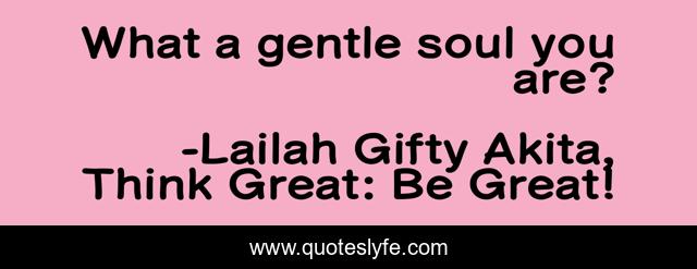 "Lailah Gifty Akita, Think Great: Be Great! Quotes." Quoteslyfe.com, 2025. Fri. 05 Dec. 2025. <https://www.quoteslyfe.com/quote/What-a-gentle-soul-you-are-63749>.