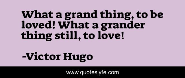 This page presents the quote "What a grand thing, to be loved! What a grander thing still, to love!". Author of this quote is Victor Hugo. This quote is about being-loved, loving,.