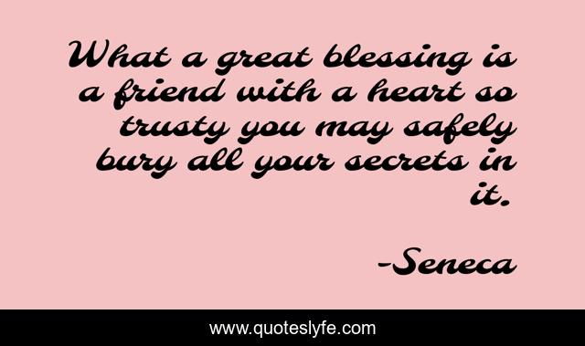 This page presents the quote "What a great blessing is a friend with a heart so trusty you may safely bury all your secrets in it.". Author of this quote is Seneca. .