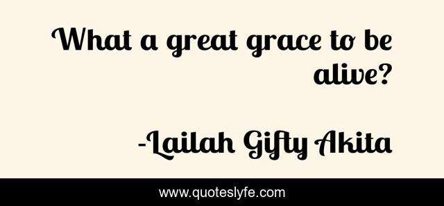 This page presents the quote "What a great grace to be alive?". Author of this quote is Lailah Gifty Akita. This quote is about living, life, grace, thankful,.