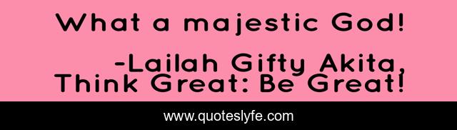 "Lailah Gifty Akita, Think Great: Be Great! Quotes." Quoteslyfe.com, 2025. Tue. 09 Dec. 2025. <https://www.quoteslyfe.com/quote/What-a-majestic-God-169160>.