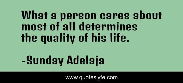 This page presents the quote "What a person cares about most of all determines the quality of his life.". Author of this quote is Sunday Adelaja. .