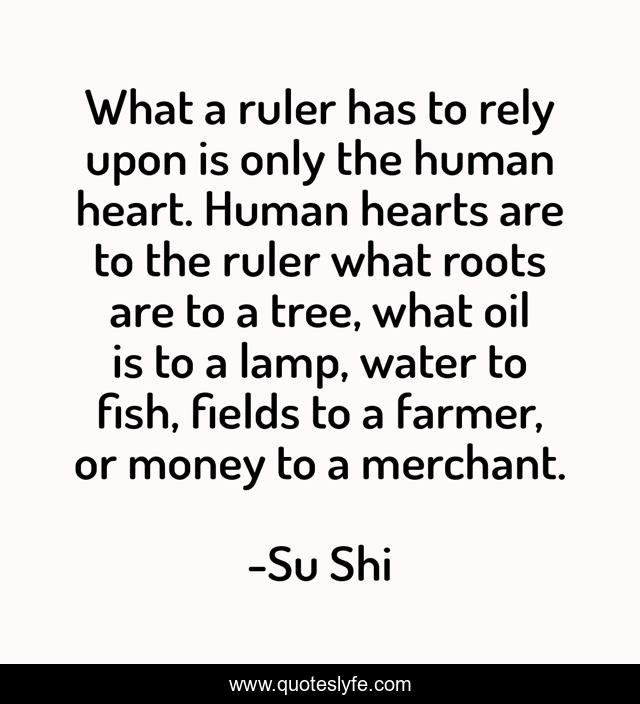 What a ruler has to rely upon is only the human heart. Human hearts are to the ruler what roots are to a tree, what oil is to a lamp, water to fish, fields to a farmer, or money to a merchant.