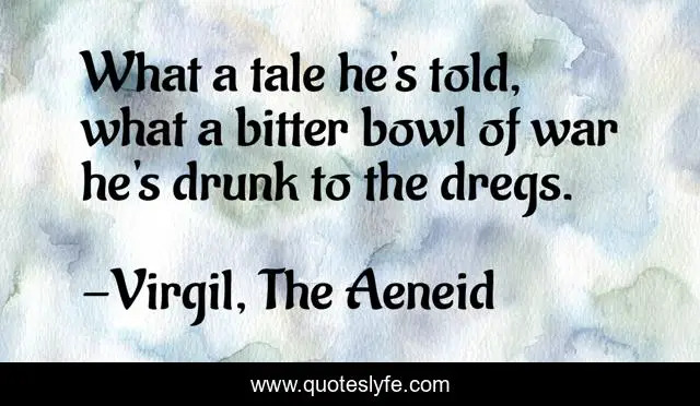 This page presents the quote "What a tale he's told, what a bitter bowl of war he's drunk to the dregs.". Author of this quote is Virgil, The Aeneid. This quote is about sorrow, war,.