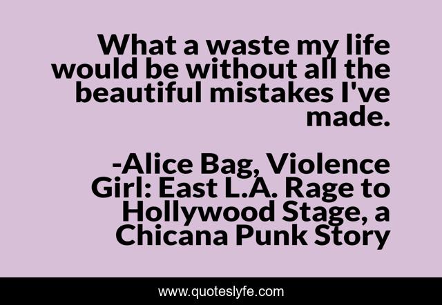 This page presents the quote "What a waste my life would be without all the beautiful mistakes I've made.". Author of this quote is Alice Bag, Violence Girl: East L.A. Rage to Hollywood Stage, a Chicana Punk Story. This quote is about life, mistakes, life-lessons, philosophy,.
