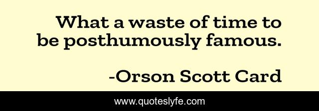 This page presents the quote "What a waste of time to be posthumously famous.". Author of this quote is Orson Scott Card. .