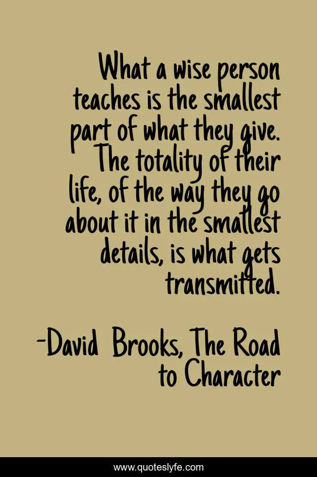 "David Brooks, The Road to Character Quotes." Quoteslyfe.com, 2025. Fri. 05 Dec. 2025. <https://www.quoteslyfe.com/quote/What-a-wise-person-teaches-is-the-173506>.