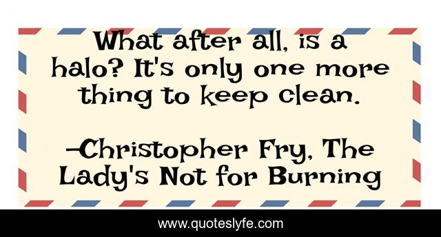 "Christopher Fry, The Lady's Not for Burning Quotes." Quoteslyfe.com, 2025. Mon. 08 Dec. 2025. <https://www.quoteslyfe.com/quote/What-after-all-is-a-halo-It-30029>.