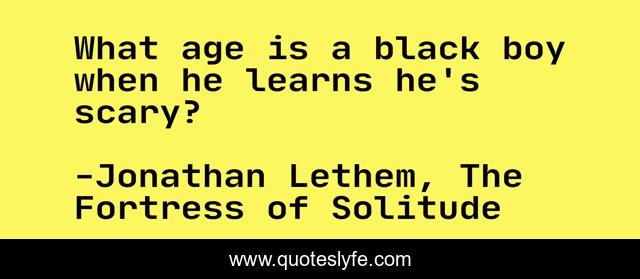 "Jonathan Lethem, The Fortress of Solitude Quotes." Quoteslyfe.com, 2025. Sun. 07 Dec. 2025. <https://www.quoteslyfe.com/quote/What-age-is-a-black-boy-when-200302>.