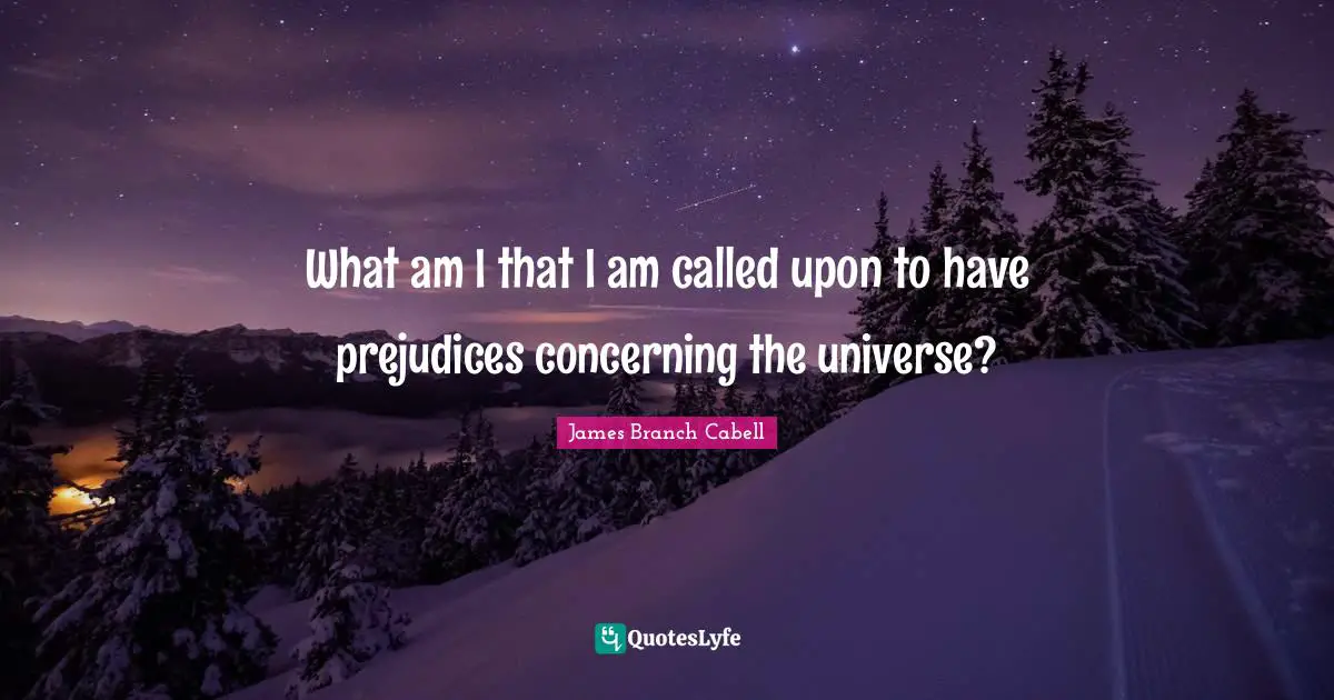 This page presents the quote "What am I that I am called upon to have prejudices concerning the universe?". Author of this quote is James Branch Cabell. This quote is about prejudice, universe,.