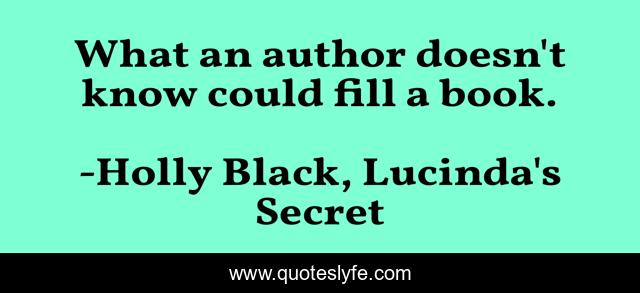 This page presents the quote "What an author doesn't know could fill a book.". Author of this quote is Holly Black, Lucinda's Secret. This quote is about books, knowledge, author,.