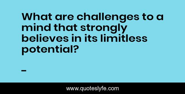 This page presents the quote "What are challenges to a mind that strongly believes in its limitless potential?". Author of this quote is . This quote is about challenges, edmond-mbiaka, limitless-potential, believe, mind,.