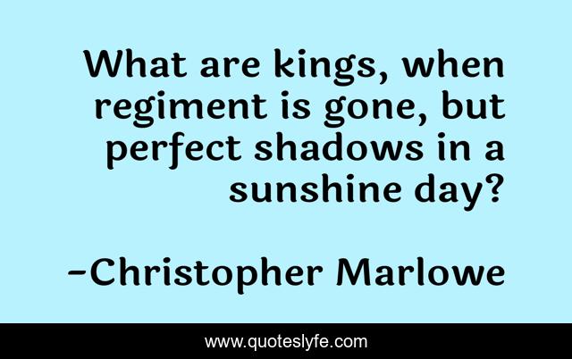 This page presents the quote "What are kings, when regiment is gone, but perfect shadows in a sunshine day?". Author of this quote is Christopher Marlowe. This quote is about shadows, sunshine, day,.