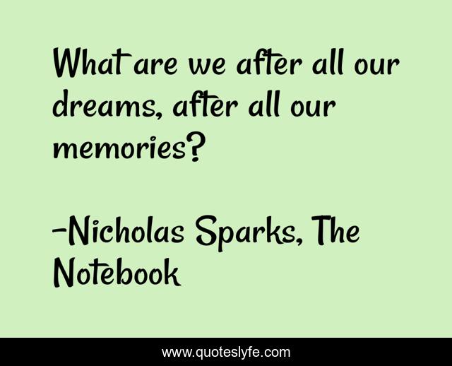This page presents the quote "What are we after all our dreams, after all our memories?". Author of this quote is Nicholas Sparks, The Notebook. .