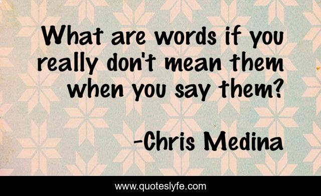 This page presents the quote "What are words if you really don't mean them when you say them?". Author of this quote is Chris Medina. .
