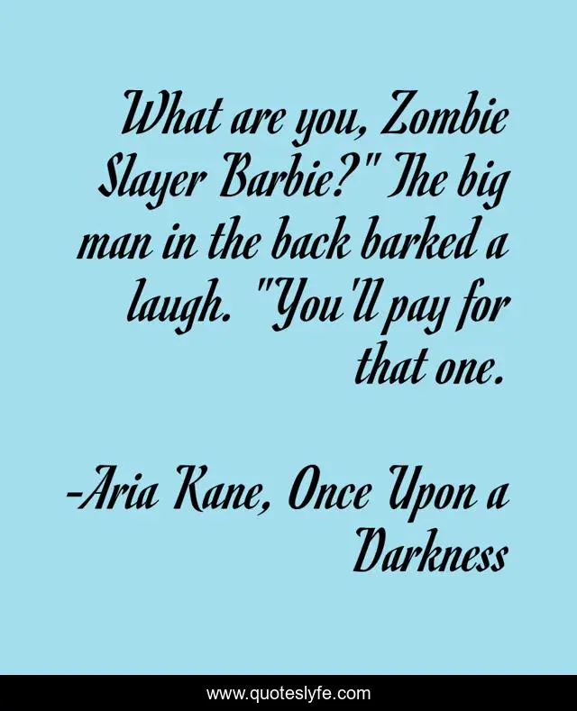 "Aria Kane, Once Upon a Darkness Quotes." Quoteslyfe.com, 2025. Sun. 07 Dec. 2025. <https://www.quoteslyfe.com/quote/What-are-you-Zombie-Slayer-Barbie-The-250988>.