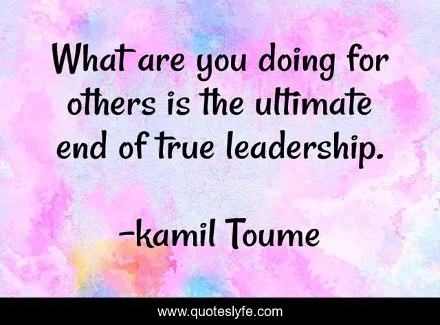 This page presents the quote "What are you doing for others is the ultimate end of true leadership.". Author of this quote is kamil Toume. .