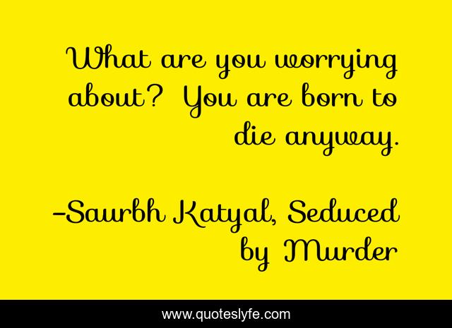 This page presents the quote "What are you worrying about? You are born to die anyway.". Author of this quote is Saurbh Katyal, Seduced by Murder. This quote is about life, death, worry,.