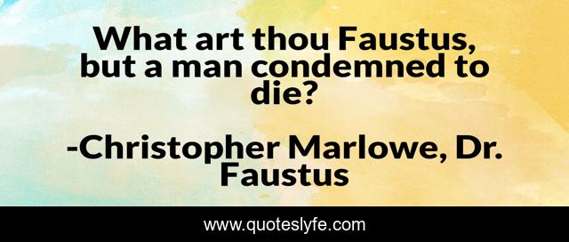 This page presents the quote "What art thou Faustus, but a man condemned to die?". Author of this quote is Christopher Marlowe, Dr. Faustus. This quote is about tragedy, faustus, doctors,.