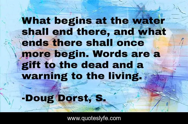 This page presents the quote "What begins at the water shall end there, and what ends there shall once more begin. Words are a gift to the dead and a warning to the living.". Author of this quote is Doug Dorst, S.. This quote is about living, dead, water, books, words, cycles,.
