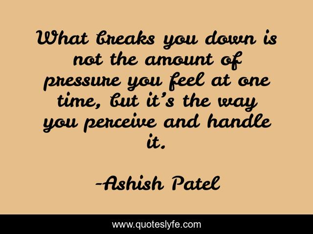 What breaks you down is not the amount of pressure you feel at one time, but it’s the way you perceive and handle it.
