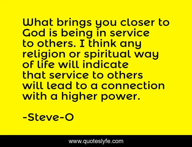 This page presents the quote "What brings you closer to God is being in service to others. I think any religion or spiritual way of life will indicate that service to others will lead to a connection with a higher power.". Author of this quote is Steve-O. This quote is about god, life, service,.