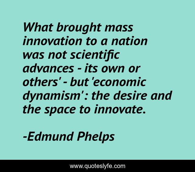 This page presents the quote "What brought mass innovation to a nation was not scientific advances - its own or others' - but 'economic dynamism': the desire and the space to innovate.". Author of this quote is Edmund Phelps. This quote is about desire, innovation, nation,.