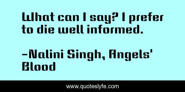 This page presents the quote "What can I say? I prefer to die well informed.". Author of this quote is Nalini Singh, Angels' Blood. This quote is about life, death, humor, knowledge, nalini-sighn, elena, guild-hunter, vampires,.