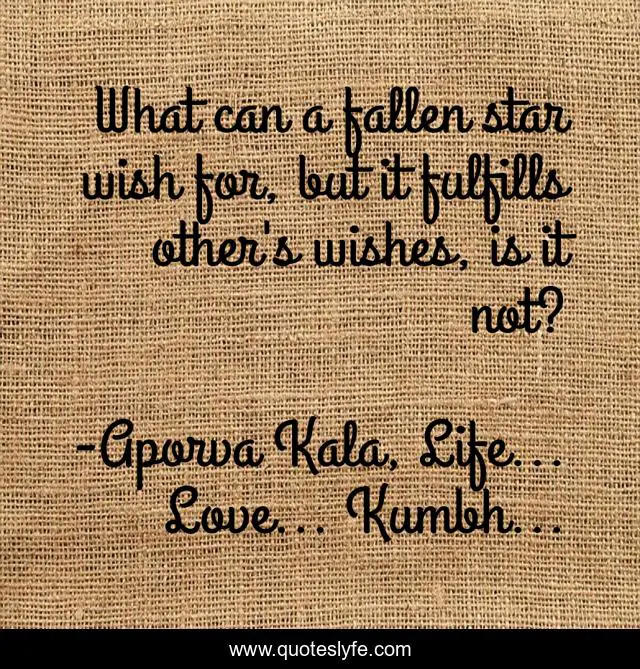 "Aporva Kala, Life... Love... Kumbh... Quotes." Quoteslyfe.com, 2025. Sat. 06 Dec. 2025. <https://www.quoteslyfe.com/quote/What-can-a-fallen-star-wish-for-234199>.