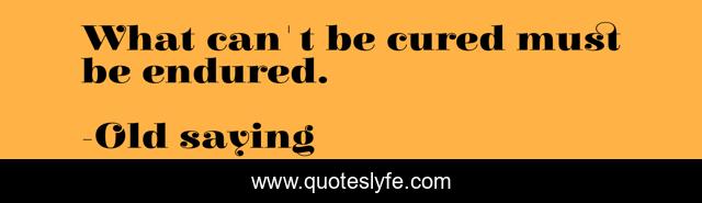 This page presents the quote "What can't be cured must be endured.". Author of this quote is Old saying. .