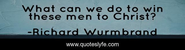 This page presents the quote "What can we do to win these men to Christ?". Author of this quote is Richard Wurmbrand. This quote is about gospel, missionary,.