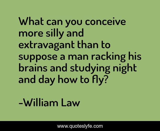 This page presents the quote "What can you conceive more silly and extravagant than to suppose a man racking his brains and studying night and day how to fly?". Author of this quote is William Law. .