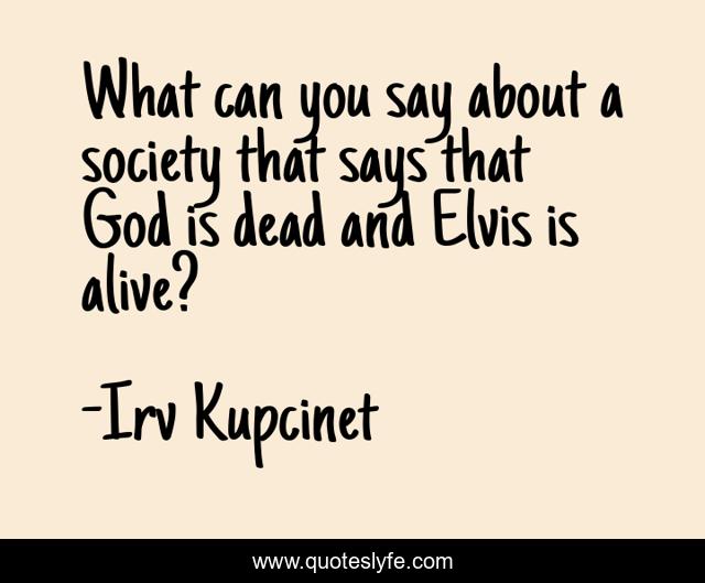This page presents the quote "What can you say about a society that says that God is dead and Elvis is alive?". Author of this quote is Irv Kupcinet. .